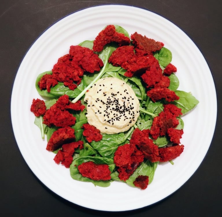 My recipe for Beetroot Falafels is simple and versatile, perfect for salads, wraps, or even as a burger substitute. They’re quick to prepare and will keep in the fridge for up to a week. I highly recommend pairing them with my Hummus. Serve them together in a salad, or make a wrap: take a flatbread, add a handful of spinach, three falafels, a dollop of hummus, and a sprinkle of Nigella seeds. Roll it up, and you’ve got a delicious, versatile meal.