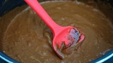 In a saucepan, combine 125g of butter, sugar, golden syrup, and treacle. Heat over medium heat, stirring with a spatula, until the butter melts and the sugar dissolves. The mixture should resemble a thick, dark syrup.