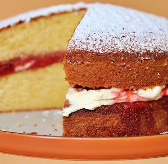 Victoria sponges are often one of the first cakes people bake; they’re simple, use few ingredients, and follow a 1:1:1:1 ratio (fat, sugar, flour, and eggs weighing the same). My mum’s McDougalls’ baking book ingrained the imperial measurements into my brain: 4oz butter, 4oz sugar, 4oz flour, and 2 eggs. I’ve tweaked the recipe slightly, using less fat and flour compared to the eggs and a bit more sugar. It scales up and down nicely, though I haven’t tested all bake times, so keep an eye on it: 16cm cake: 90g butter, 105g sugar, 2 eggs, 90g flour, 1 tbsp milk; bake for ~25 mins 18cm cake: 180g butter, 210g sugar, 4 eggs, 180g flour, 2 tbsp milk; bake for ~30 mins For the filling, I make a “lazy jam”, more like a compote for texture. It sets if cooled and refrigerated. As for cream, 200ml is enough to cover the sponge, but use 300ml if you prefer a thicker layer.